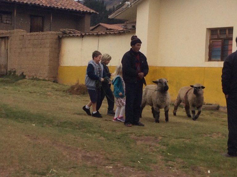 Finally we arrived. Nobody to be seen except some sheep, and some more. They took the kids for a little run….