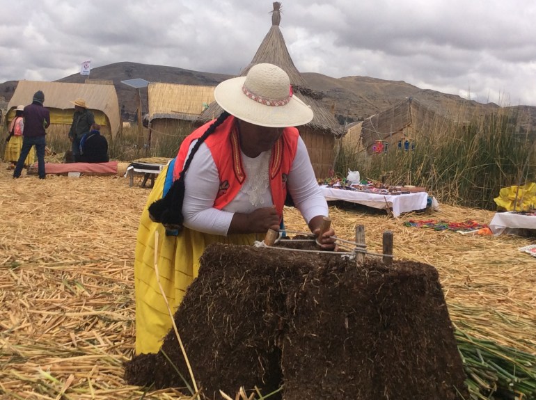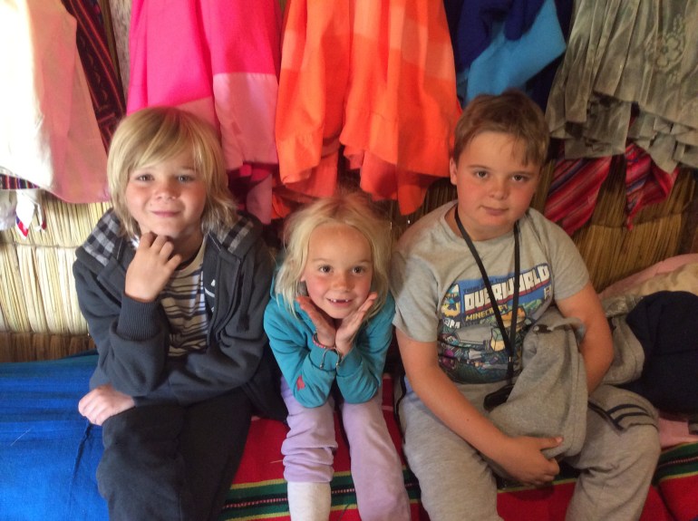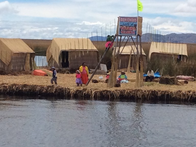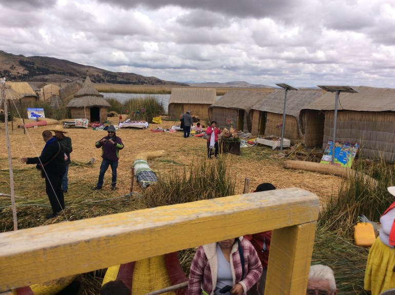 Arriving to the reed island called Uros we got off with other people and sat around listening to the guide telling us about it. These reed islands are not the original ones as the lake dried up some 50 years ago.