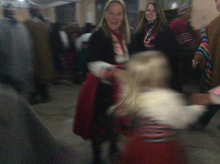 Then we got ready to go to the village hall for some music and dancing. They insisted for us to put on traditional clothing which I first refused but no chance. When I finally had all the layers on it was so comfy and warm. No good pictures of me with the clothing but the others yes.