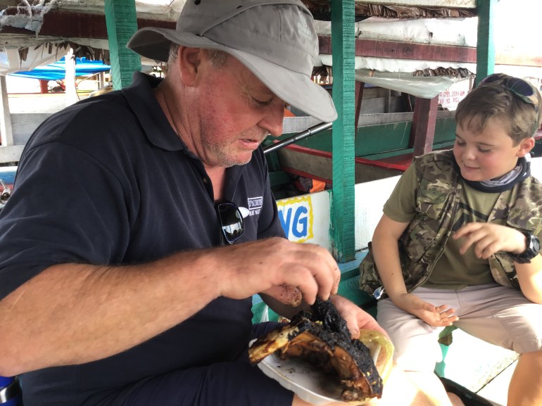 And back at the port which was rough and ready we went for a beer. Tasted good as it was hot.