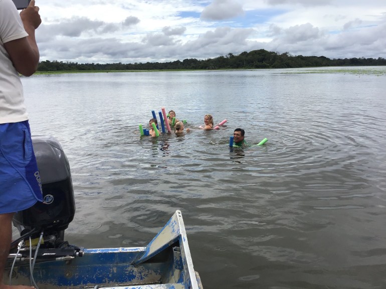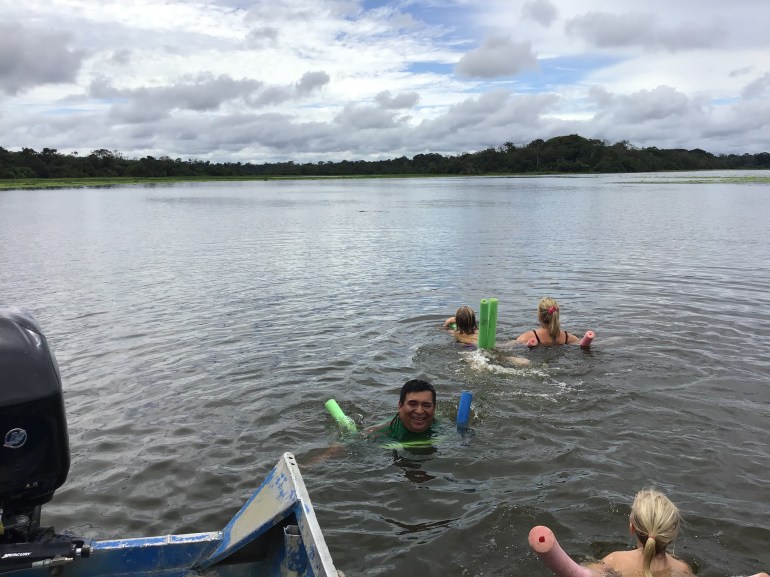 And then it was our turn to go for a swim…..first I was refusing point blank, I mean there is PIRANHAS in there for gods sake……not ready to die yet….