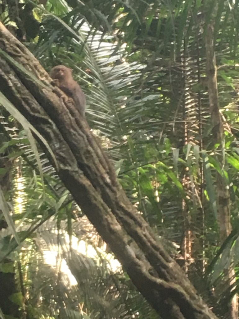 We saw Pygmy marmoset monkeys, the smallest in the world, a giant toad and other monkeys. Later we went out in the night to look for cayman which we found and of course, no photos…