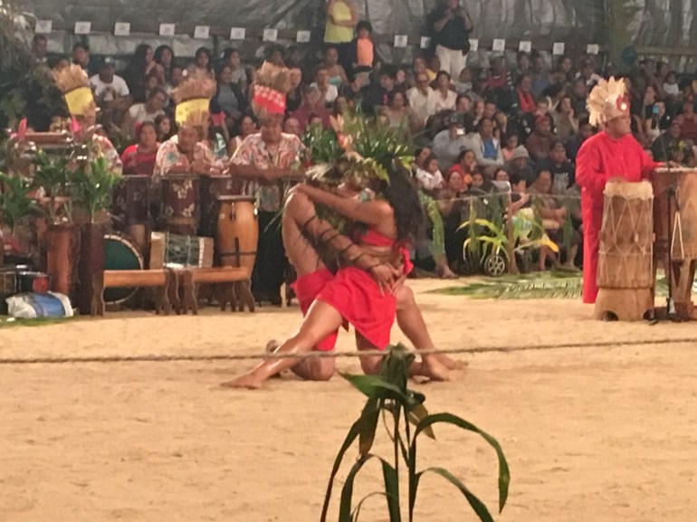 The Huahine heiva festival was so much nicer than the Tahiti one. It was held in a local arena, benches on sand and local people competing each other from the different districts in Huahine.