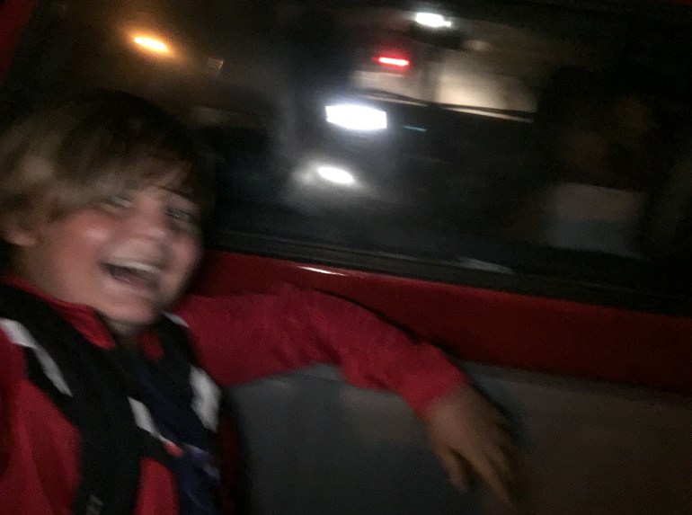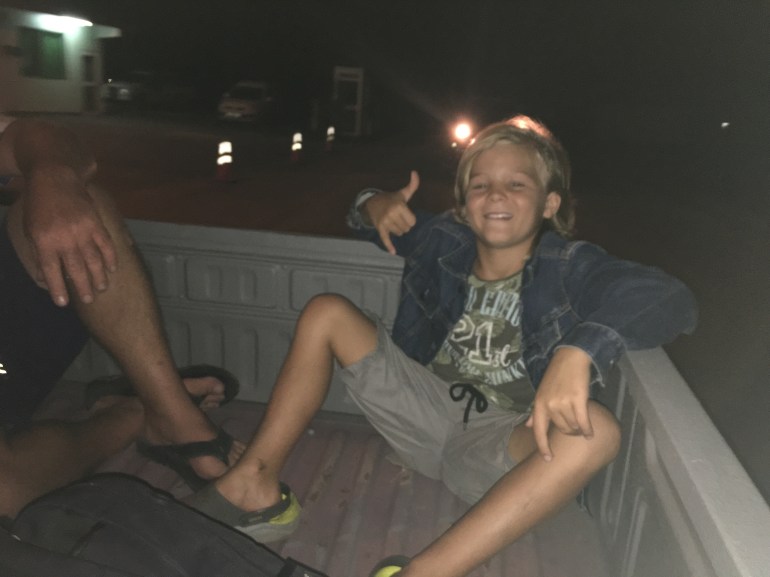 And luckily we got a lift back on back of a truck, to the kids great delight. Sitting in the back….