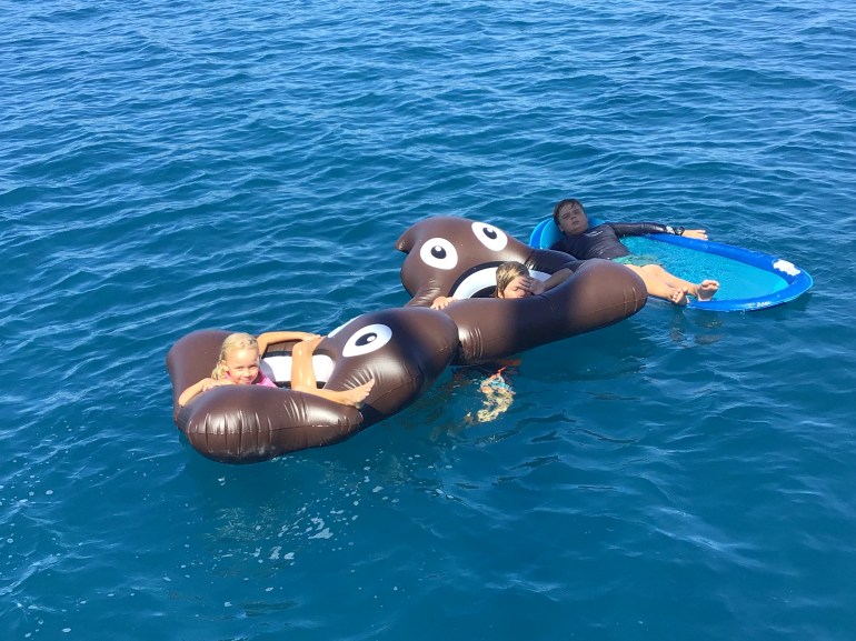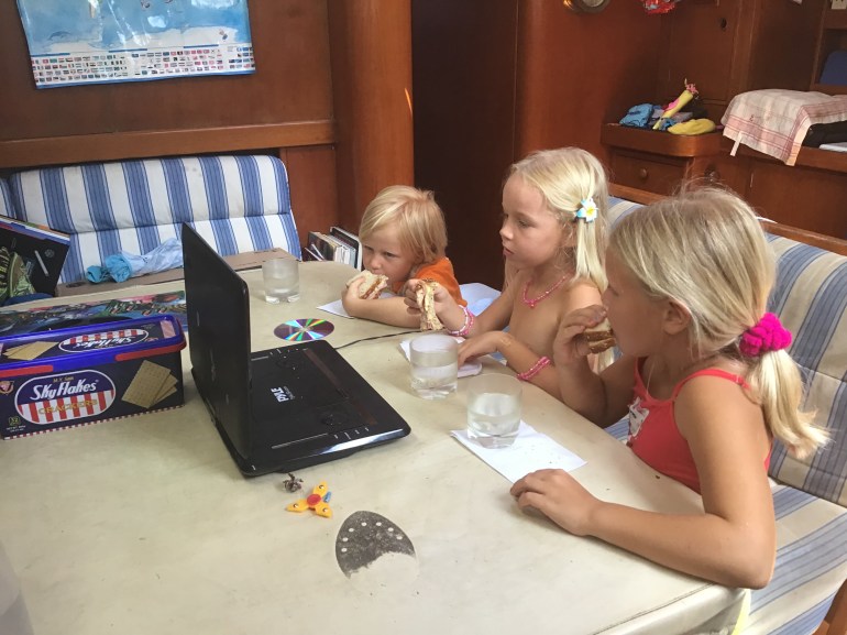 Sundowners on Panacea, the Finnish family and a sleepover for Aarre, their oldest on our boat.