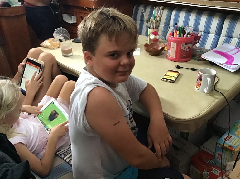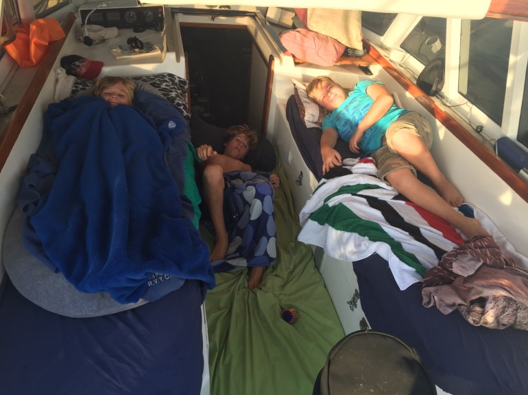 The boys and Nathan from Slingshot started a little waffle business while at anchor. Must say they did a great job, lovely service and earned money on the way.