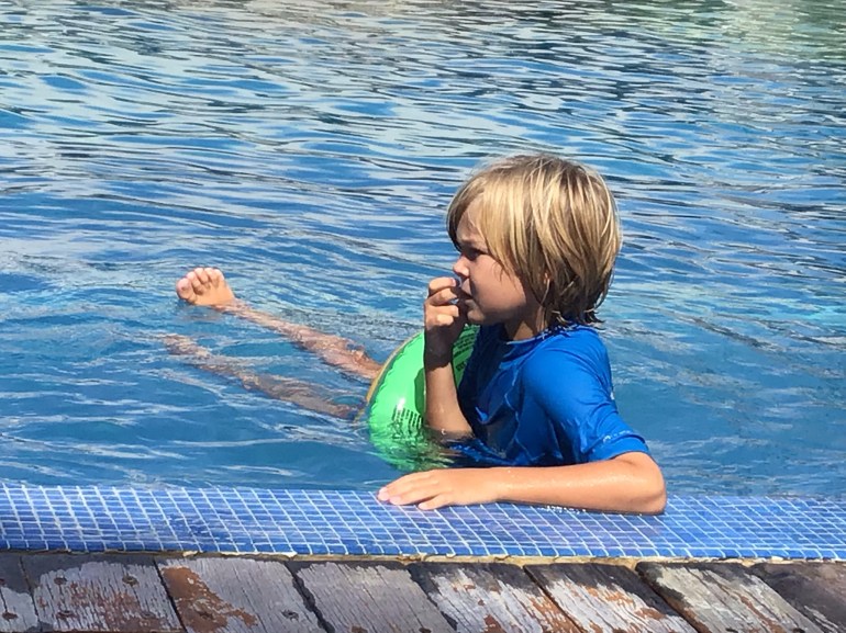 Days were spent schooling, sleepovers with various boat kids and the use of the lovely pool at the resort.
