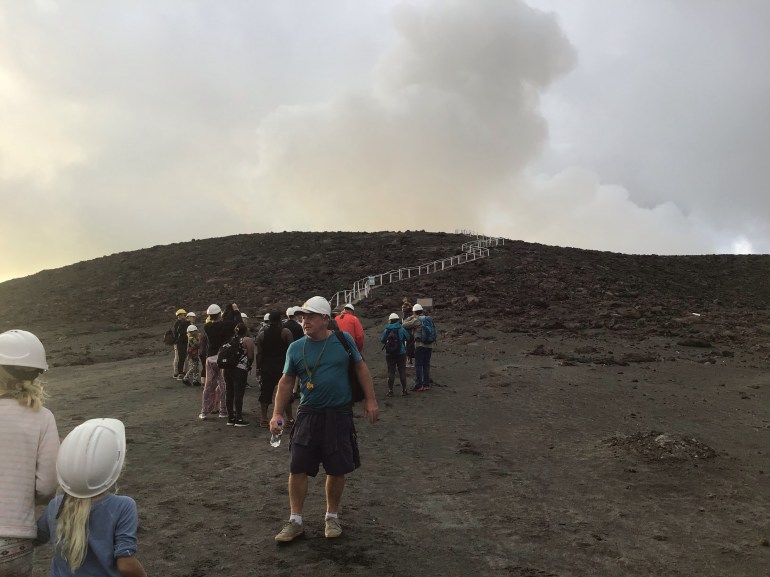The following day we organised a tour to the famous volcano. Riding in the back of the car to a very busy attraction with hundreds of people around. It was very well organised and after getting our hard hats we took a seat to watch a local ceremony and dance show.