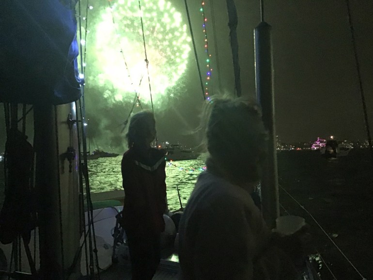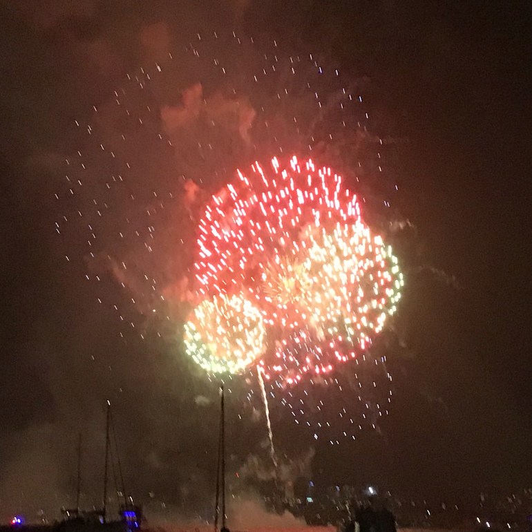 We also knew there was a shift in the wind direction and high winds coming so we had 2 anchors out. And boy did it blew up. The anchorage became a chaos of dragging boats, waves and howling winds. The rescue services were busy indeed. I couldn’t relax nor have a drink until it finally calmed down about 11.30 pm and we could relax and watch the world famous firework display. Photos don’t do any justice.