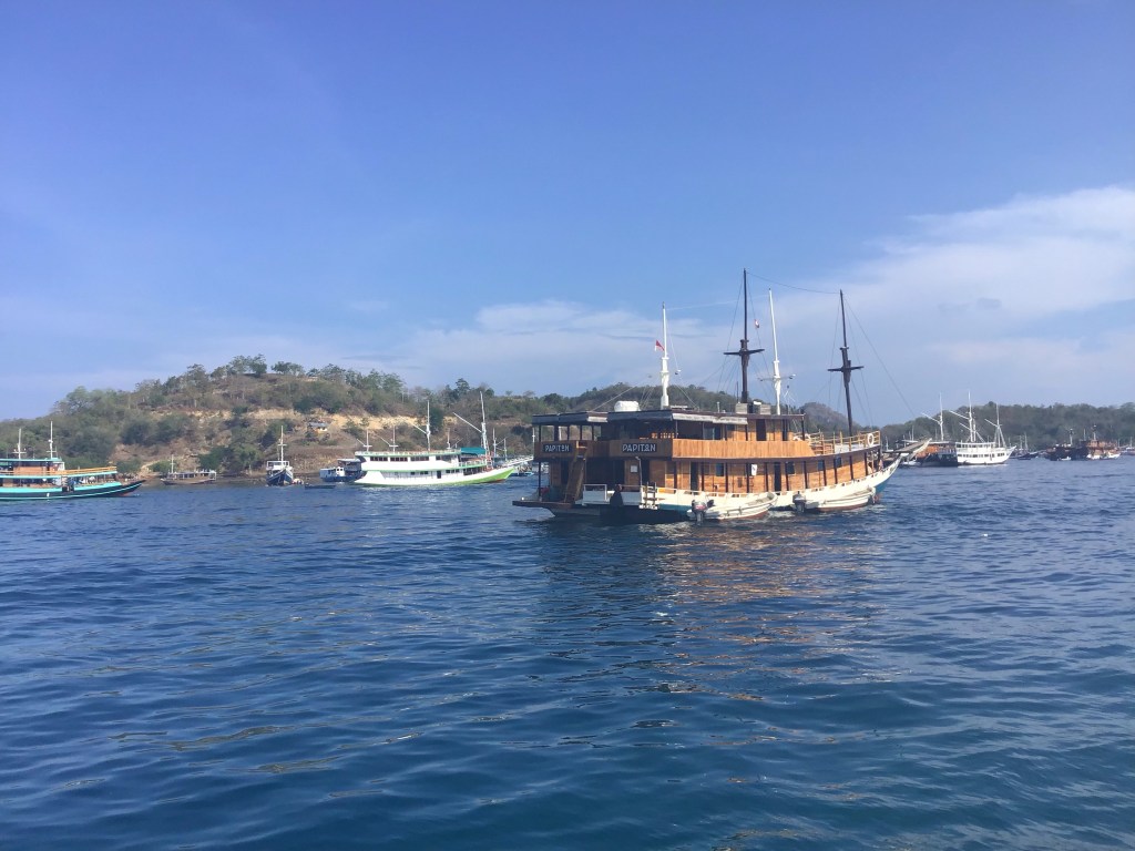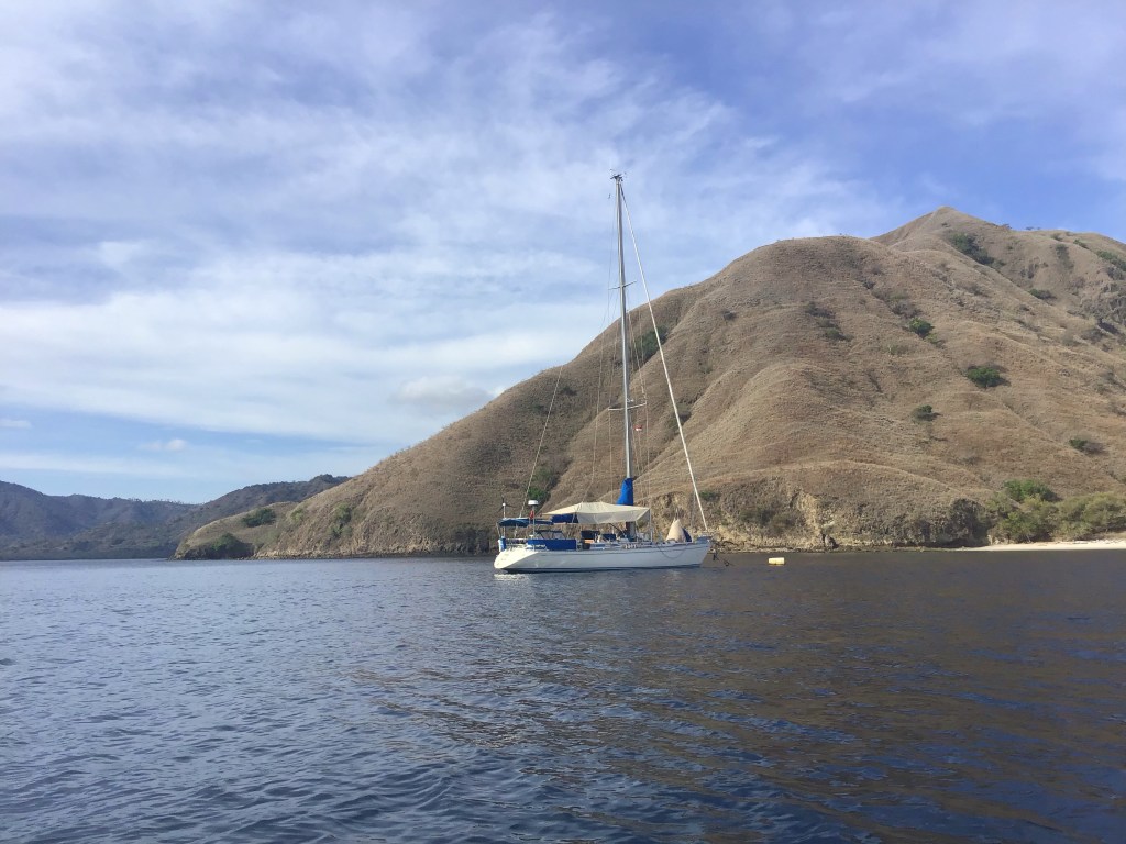 Next morning we sailed to the famous Komodo island. Originally I wanted to go to Rinca island but it was still closed. A local chased us with his little boat to tell us that there was a mooring ball to take. All good, unfortunately it was behind a high hill so we lost internet signal. There was a shout from the kids within seconds telling us to move😂