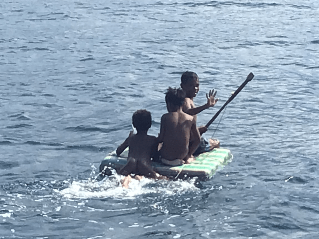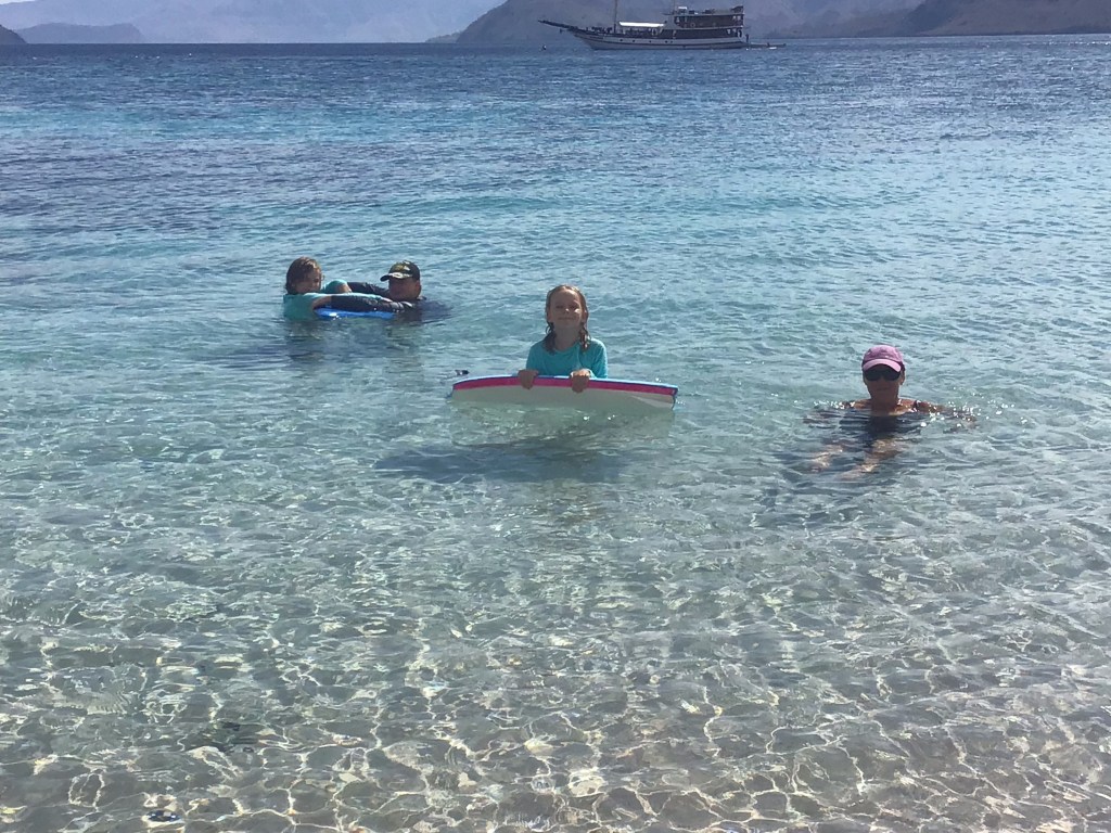 When we came back the local guy came over and sold us some wooden Komodo dragon sculptures. He could also get us food from the village so I asked for some eggs and tomatoes. And so it went that Charlie and Alice went with him…..fantastic. But looking back on our experience in Peru when I sent them on a horse ride on Almanti island in lake Titicaca and he came back with no kids……was this such a good idea?
