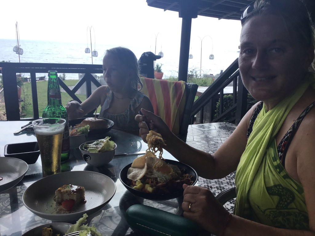 Lombok was our next stop, Medana bay marina. The restaurant there was so cheap and that’s where we had our first taste of nasi and mie goring. One dish is noodles, the other rice with a fried egg although suddenly the boys found chicken cordon bleu….