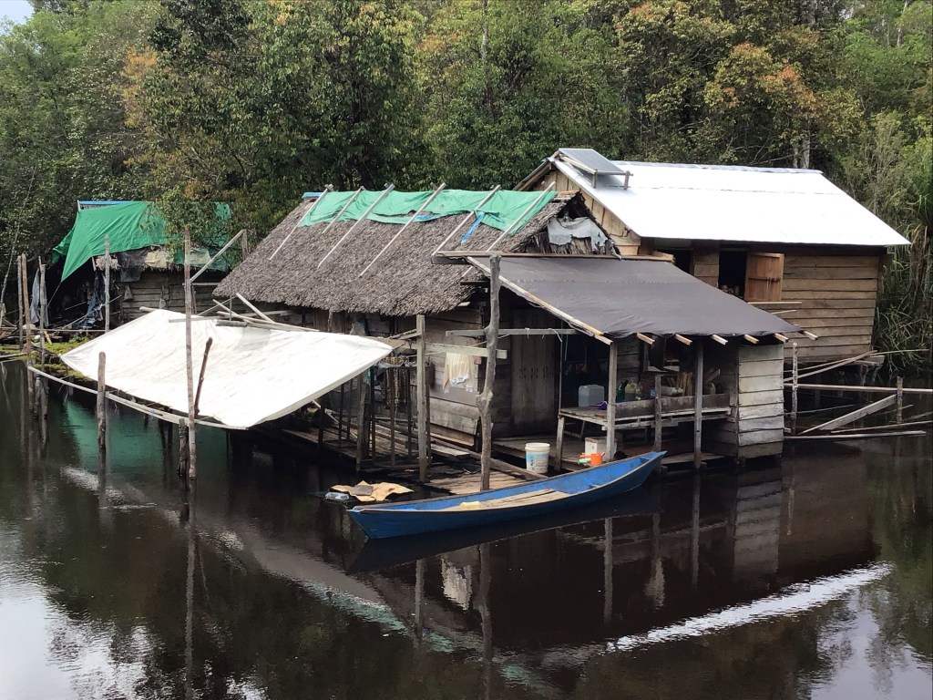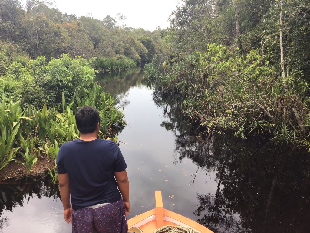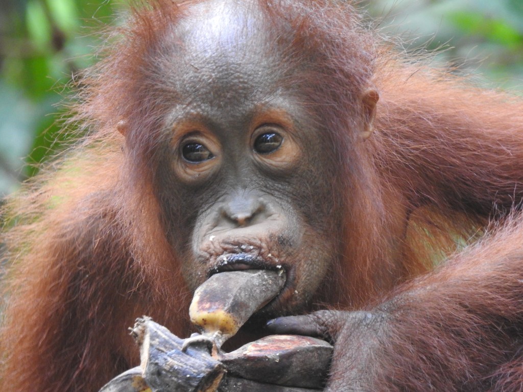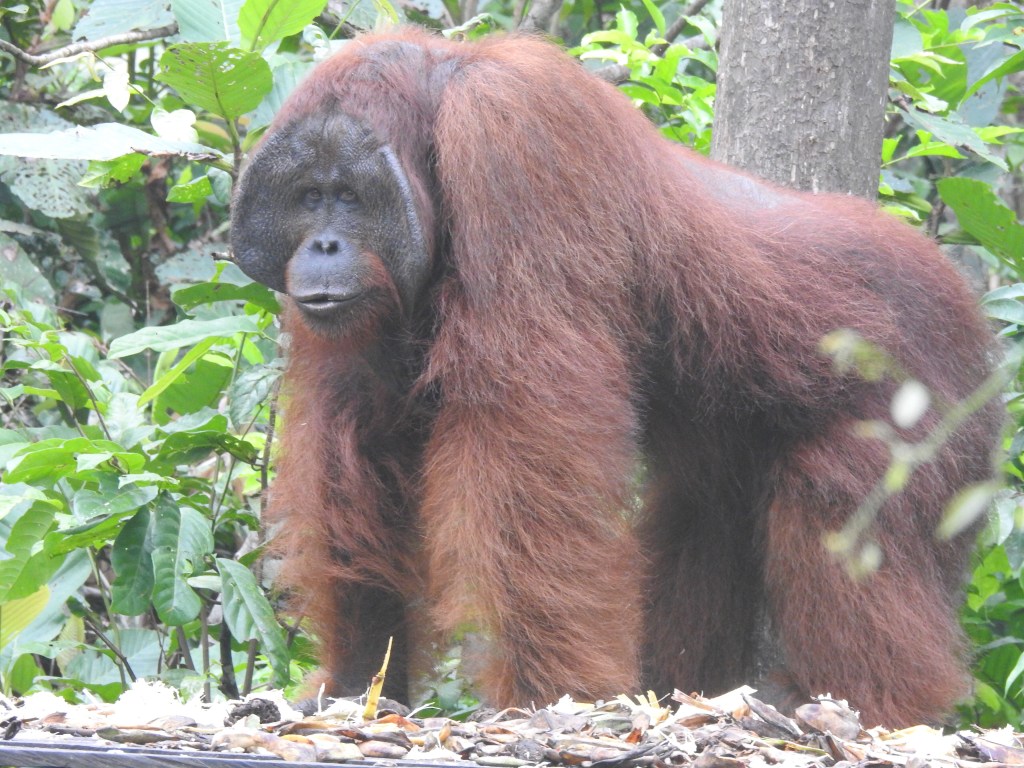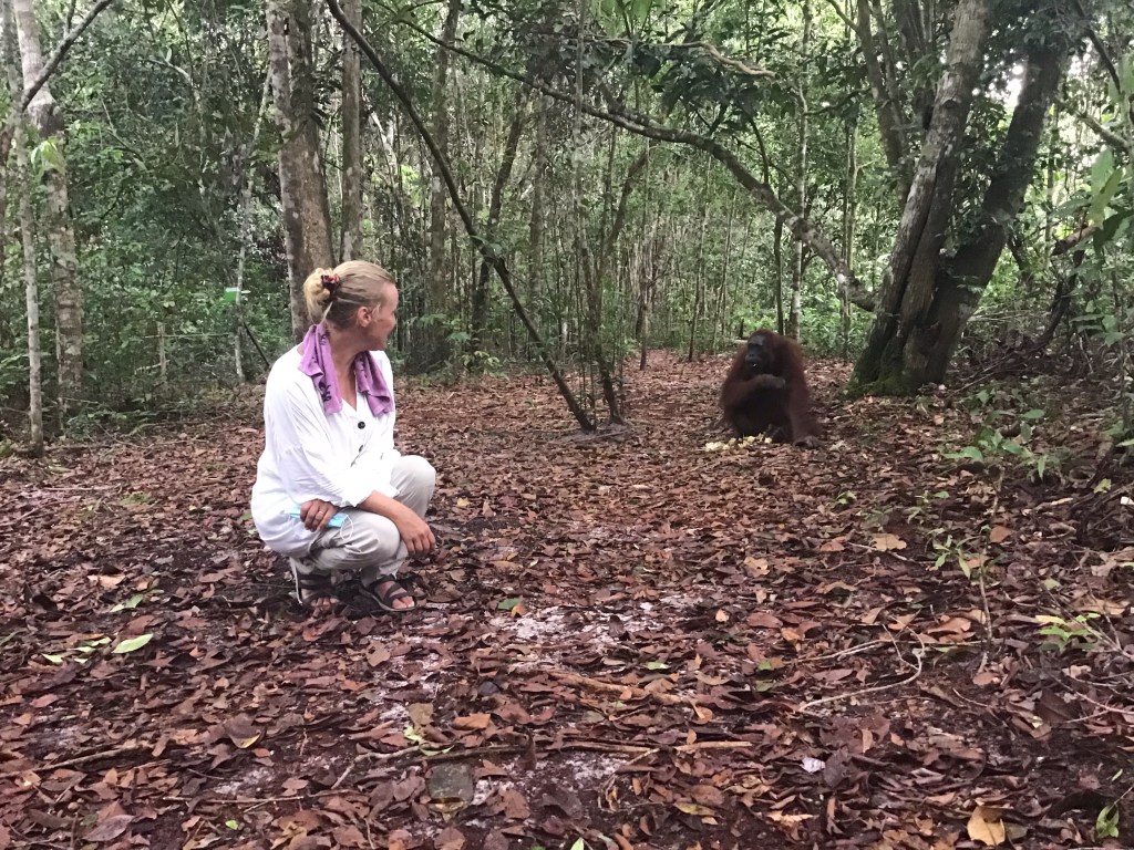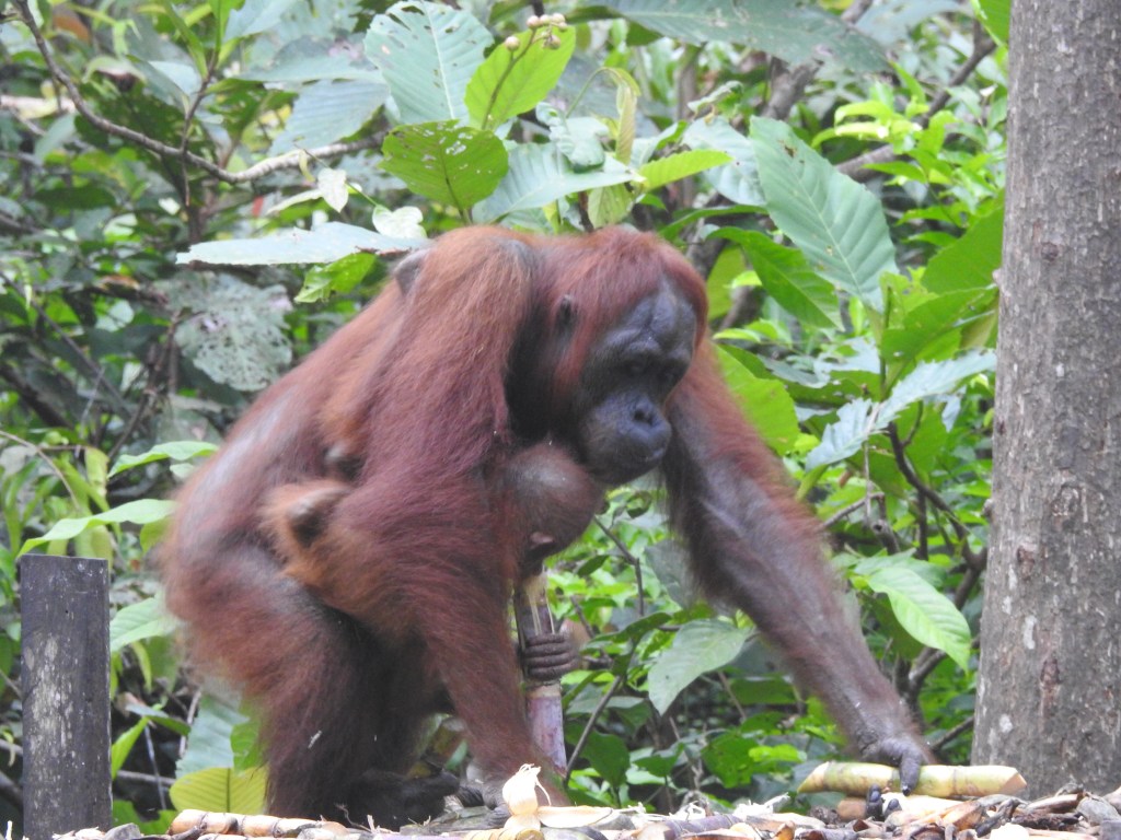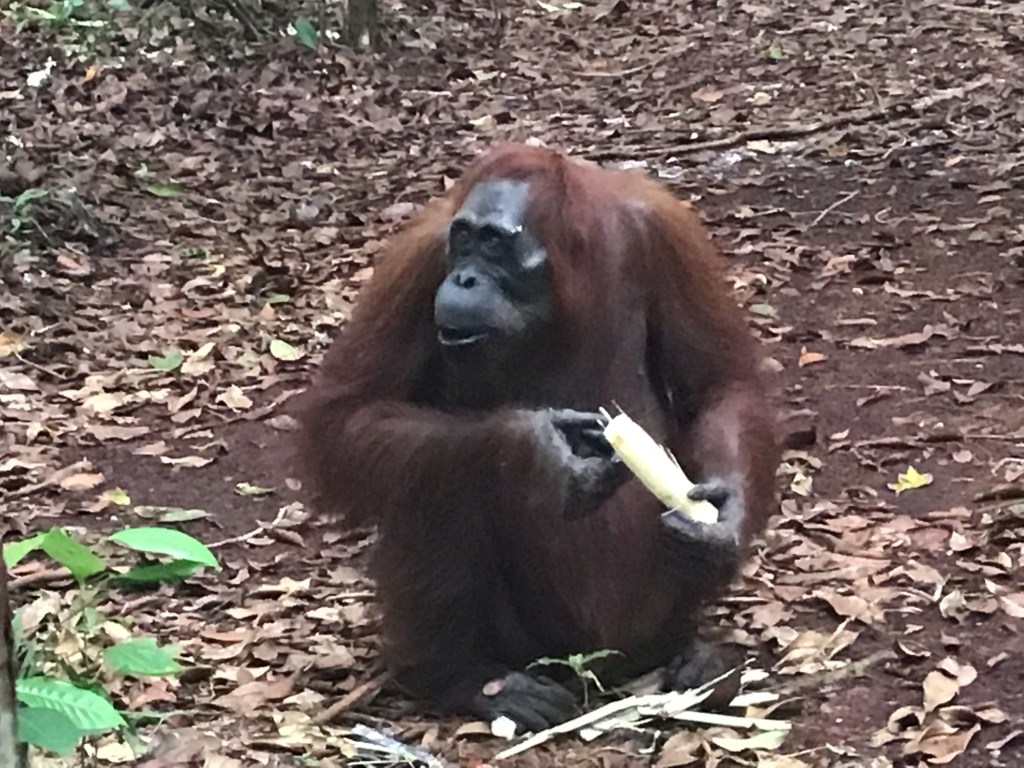 The river is home to many little villages. At our first stop we saw our first orangutan, who just walked past us and leading the way, we followed her. It was amazing…..just walking behind her….
