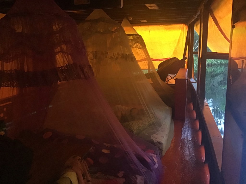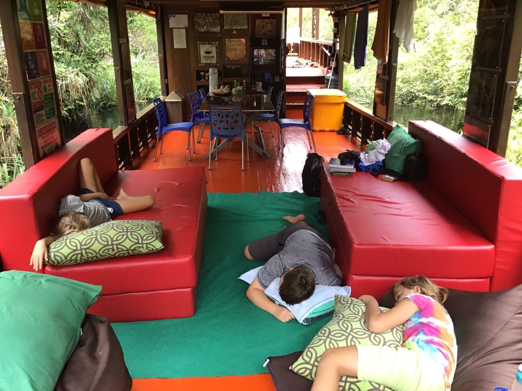 The sleeping arrangements were great. In the evening the mattresses were put on the floor, the nets hanged up and it was super cozy…..kept all the bugs/ critters and things away….had few jumping/screaming/run around episodes😀