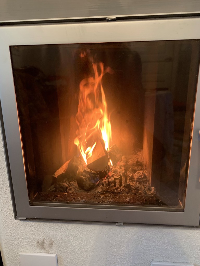 Sauna on and the fire, it was chilly.